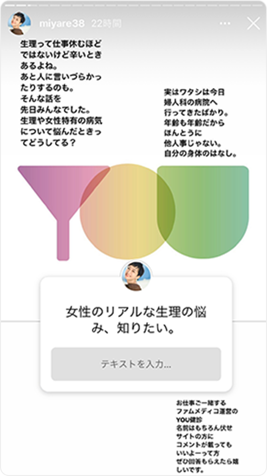 これからもYOU健診を多くの女性に広めていくべく、活動を続けて参ります。